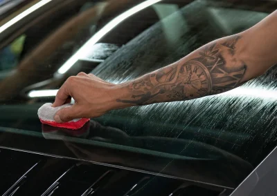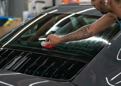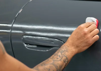 Before the ceramic coating can be applied, paint correction must occur. The reason for this is simple. Whatever you apply the coating over top of will be encapsulated for up to 5 years. That’s any contaminant or paint blemish and swirl. To prevent this, we remove all of the scratches and swirls otherwise they become permanent and unfortunately magnified by the coating itself which works like a magnifying glass once it is applied and hardens.
